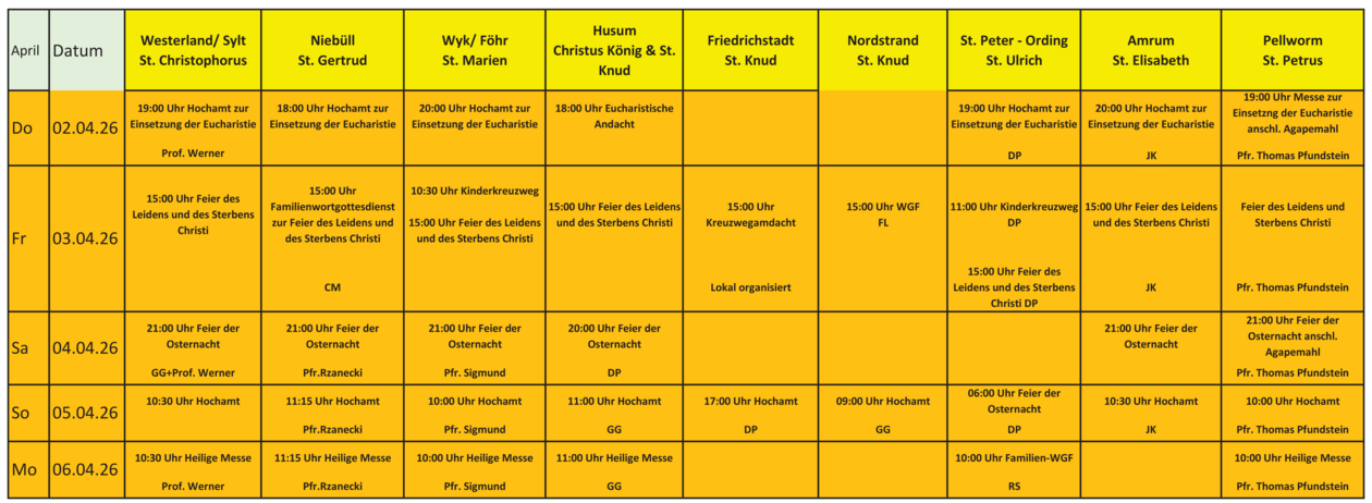 Gottesdienste von Gründonnerstag bis Ostermontag